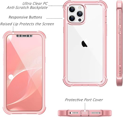 Amazon Com Dexnor Compatible With Iphone 12 Pro Max Case With Screen Protector Clear Military Rugged 360 Full Body Protective Shockproof Hard Defender Heavy Duty Cover Bumper For Iphone 12 Pro Max 6 7 Pink