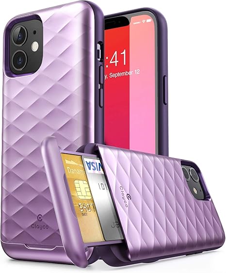 Amazon Com Clayco Argos Series Wallet Case For Iphone 12 Pro Max 6 7 2020 Release Slim Card Holder Protective Wallet Case Built In Sliding Credit Card Id Card Slot Purple